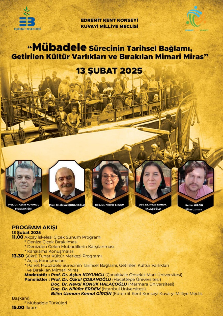 The Edremit Municipality and Edremit City Council, with the support of our Centre, will organise a panel discussion entitled ‘The Historical Context of the Exchange, the Cultural Assets Brought Over and the Architectural Heritage Left Behind’ on 13 February 2025 at the Şükrü Tunar Cultural Centre in Edremit, marking the 102nd anniversary of the Turkish-Greek Population Exchange.